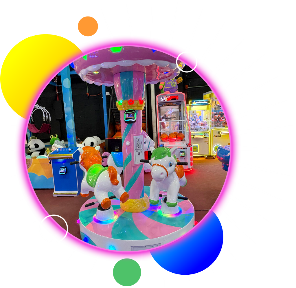 Los más pequeños de la casa vivirán su primera gran aventura en nuestros divertidos montables. ¡Súbete y despega hacia la diversión con movimientos que te harán sentir como si estuvieras en una carrera o explorando mundos lejanos!